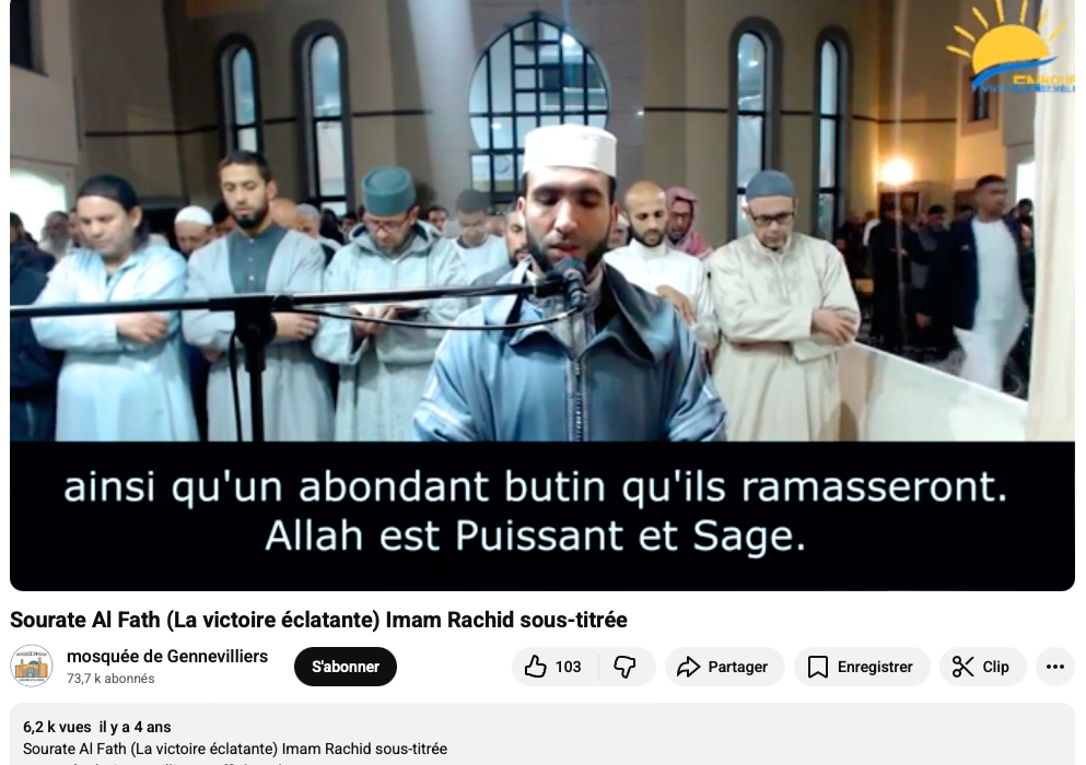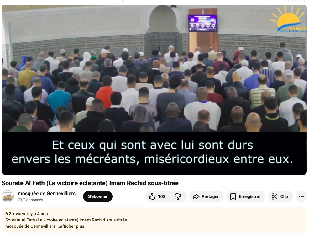 janvier 20, 2026Le Coran compte 114 sourates. L’une d’elle, El Fath, qui consacre le combat de conquête et le système du butin de guerre -femmes incluses- est très usitée pour baptiser les nouvelles mosquées en France. Dernière mosquée « El Fath » en date, celle de Magny-en-Vexin, la première du Parc National du Vexin Français (Val d’Oise).